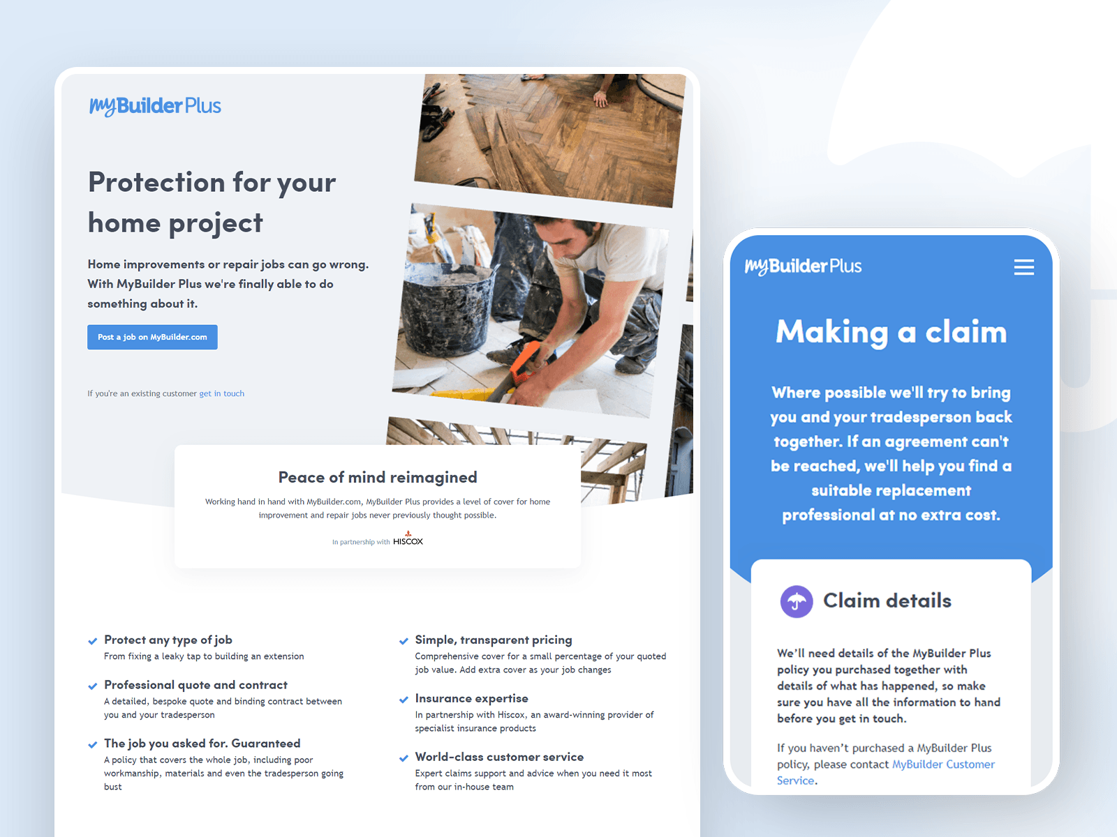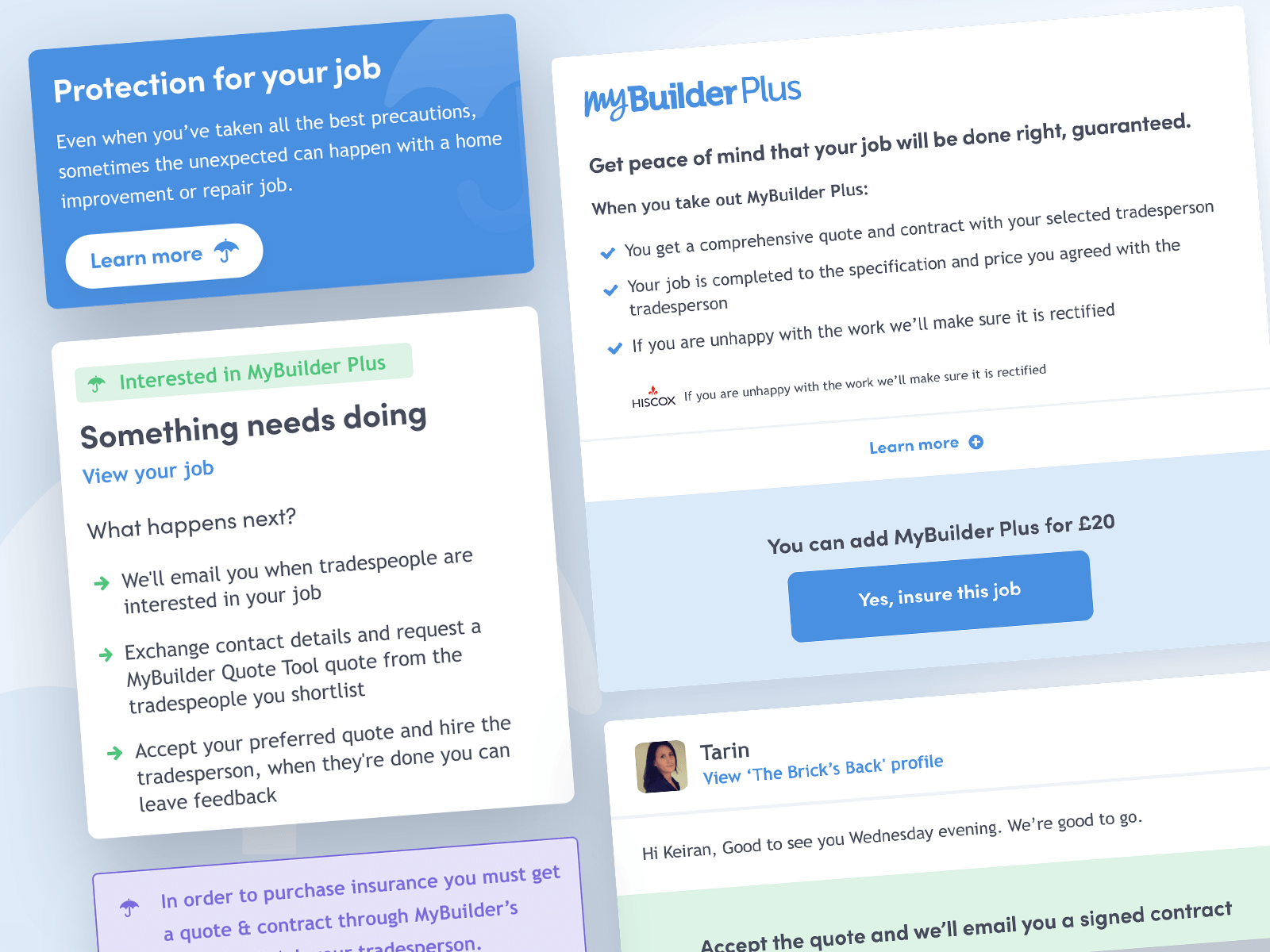 Tradespeople and homeowners lacked an easy way to secure job protection, leading to uncertainty in project agreements. The challenge was integrating insurance seamlessly within the platform while providing a standalone hub for information.