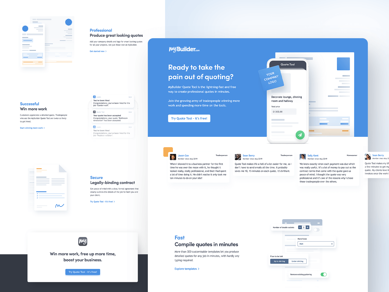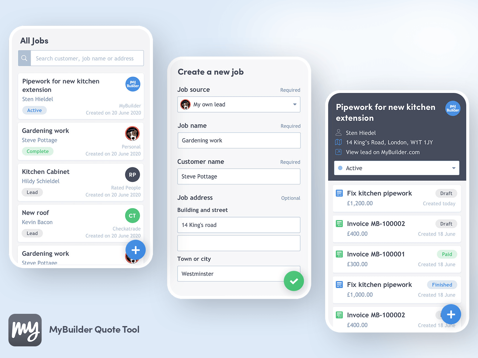 The existing MyBuilder app lacked intuitive navigation and essential tools for tradespeople, while homeowners found it difficult to manage projects and engage with professionals. Additionally, tradespeople needed a simple and efficient way to create professional quotes directly within the platform.